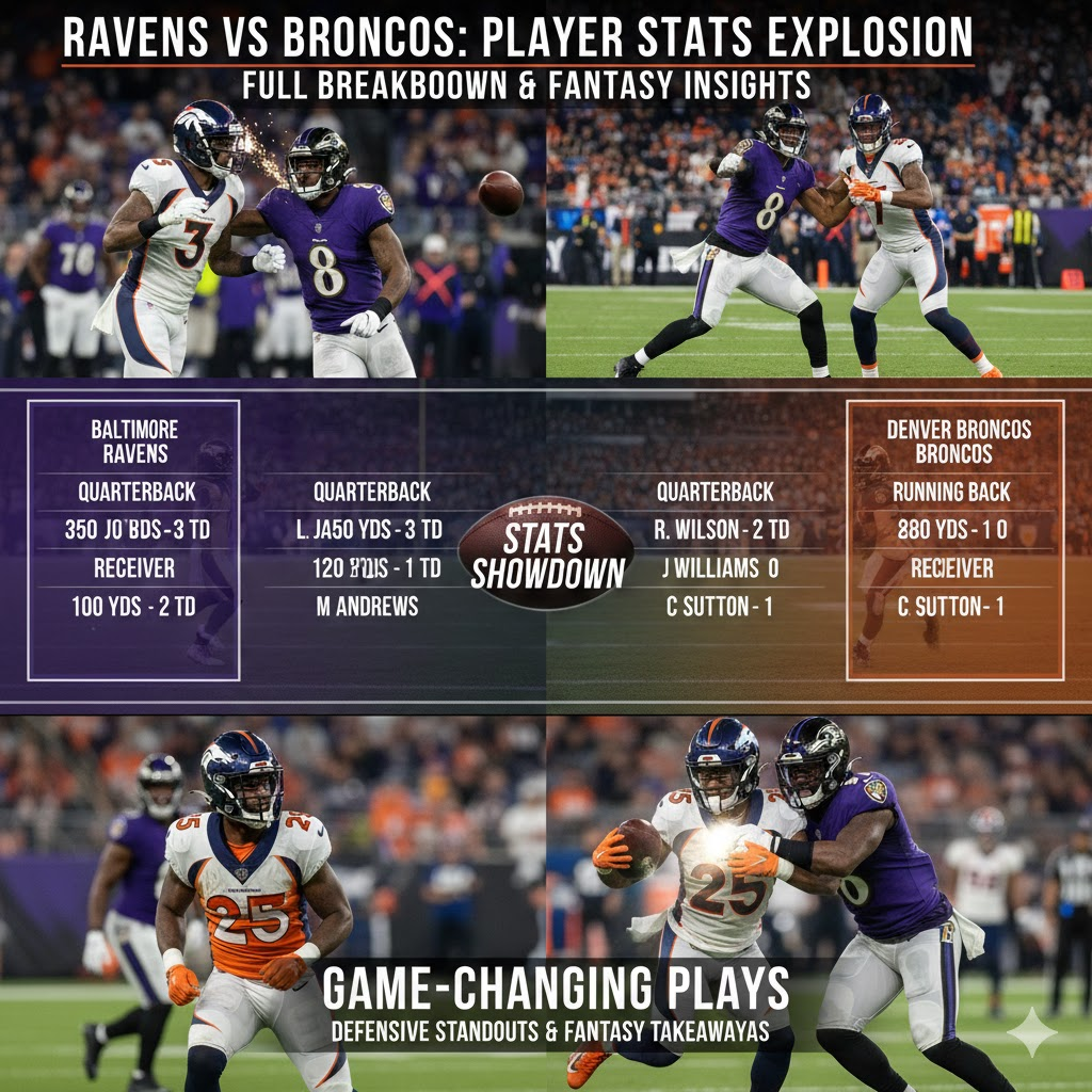 When two historic NFL franchises collide, fans expect fireworks—and that’s exactly what the Baltimore Ravens vs Denver Broncos match player stats reveal. Whether you’re a fantasy football manager, a stats enthusiast, or a passionate NFL fan, understanding individual player performances helps you see how and why the game unfolded the way it did.